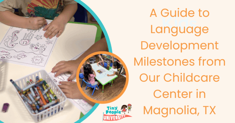 At Tiny People University Childcare Center in Magnolia, TX, we understand that your child’s first words are more than just milestones, they’re magical moments and memories. From the first “mama” to full sentences, every stage of communication is a step toward connection, confidence, and curiosity. Language doesn’t develop all at once, though. There are important…